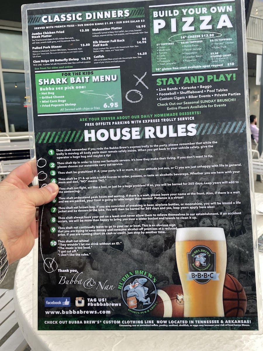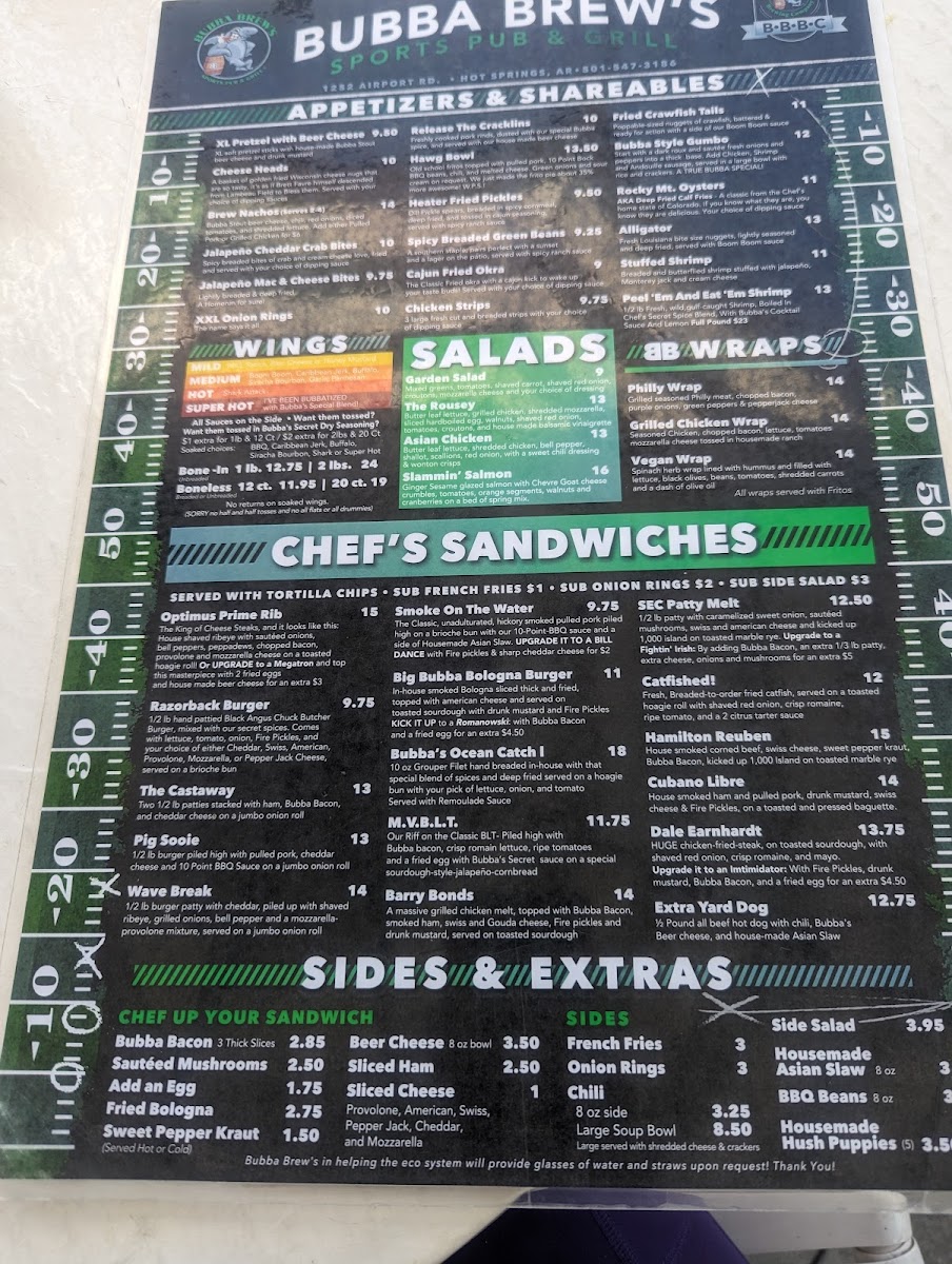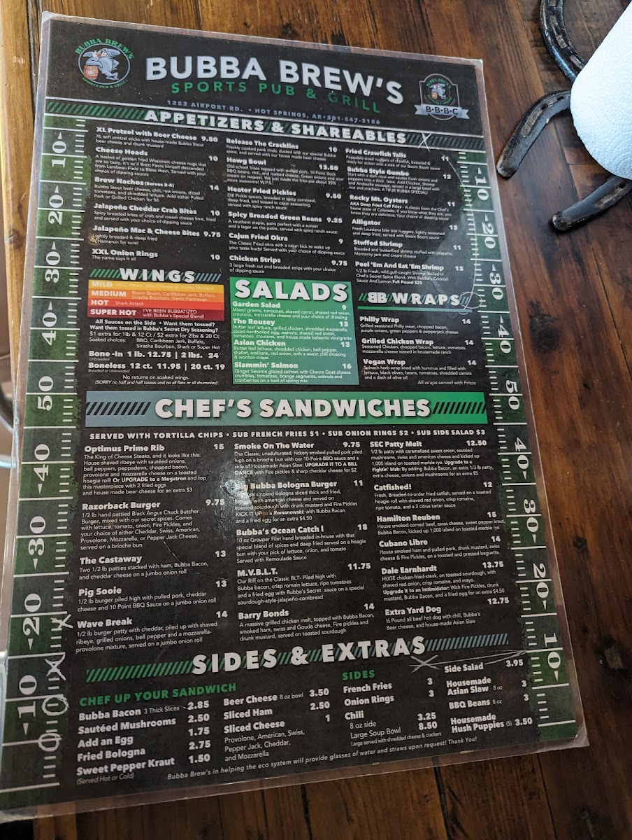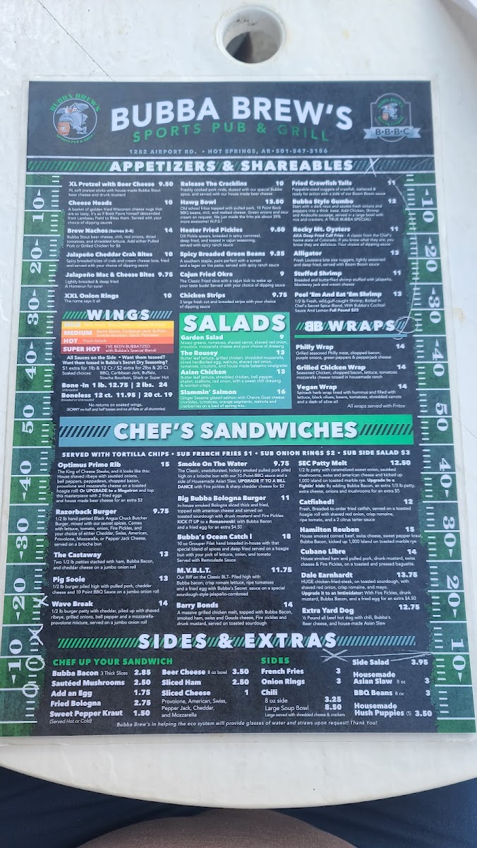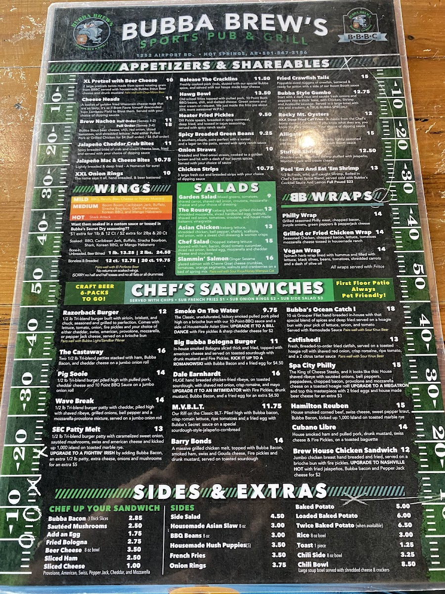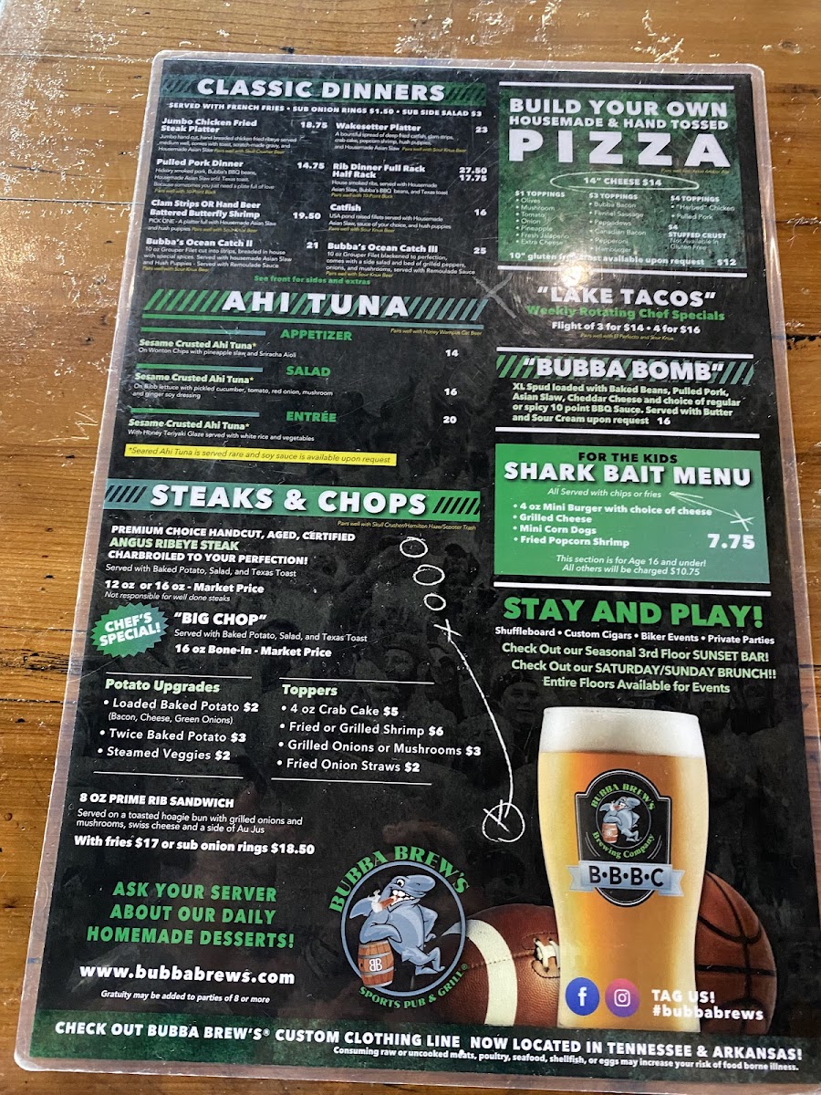 The menu at Bubba Brews - On Lake Hamilton offers a relaxed, approachable mix of American classics and flavorful bar bites, designed to complement its lakeside setting. Whether you stop by for a casual lunch, a laid-back dinner, or an evening drink with friends, you’ll find options that feel fitting for easygoing gatherings and peaceful moments by the water.
